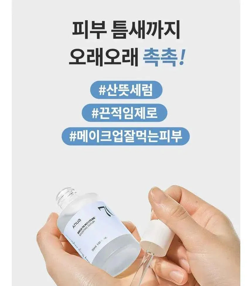 The Anua Birch 70 Moisture Boosting Serum is a powerful skin treatment designed to deeply hydrate and nourish your skin. With 70% birch sap, it provides a natural moisture boost to improve skin texture and radiance. Experience a softer, smoother and more luminous complexion with this expertly crafted serum.